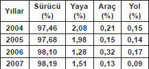 6.) Araç ilk yardım çantasında bulunması gereken malzemenin miktarını etkileyen, aşağıdakilerden hangisidir?